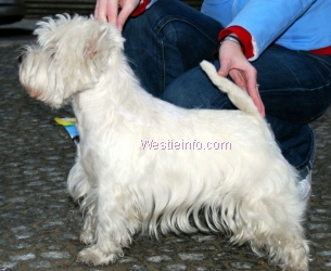 Questík je tak nějak zvláštní westík. On je prostě Q, jeden jedinej a nezaměnitelnej. Luxusní gaučák a stejně tak luxusní sporťák. Když má náladu, tak mi ukazuje, že s ním jde téměř vše. Od sportovky - na poslušnosti neustále dřeme a dřeme, přes stopy, které miluje ( panička už méně, takže si chudák moc neužije), přes aportování, coursing, agility, samozřejmě i dogdancing až po Junior handling, kde se předvádí opravdu skvěle. Jakmile mu člověk ukáže, že je to super zábava, jde do toho po hlavě - občas to bývá až na škodu. Je velmi chytrej a vynalézavej a žravej, což mi neustále dokazuje zvyšující se konto rozkousaných pamlskovníků.Věřím, že kdyby jsem s ním pracovala od malička a věděla, jak na to, tak to bude vypadat ještě o mnoho lépe, jen ty špatné nožky, kdyby nám to nekazily. Je to pes, který mě snad nikdy neppřestane udivovat, vždy má nějakýten trumf v záloze.